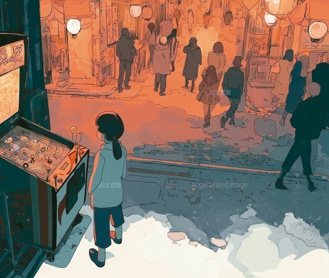我總習慣往人多處的邊緣走。 夜市像是一條發光的河,從空中垂下燈串,映在濕潤的柏油路面上,一閃一閃。我踩著星光前行,繞過烤魷魚的炭香與鹽水雞攤前的喧囂,走到那條常被人忽略的小巷轉角。那裡總是比較安靜,像所有聲音到了那裡都會自動轉為耳語。 就在那樣的盡頭,有一台彈珠台。 它年紀不小了。灰白塑膠殼早已褪色,燈泡昏暗,像病人夜裡睜開眼 ......