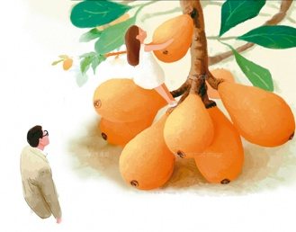 這回,我躲到後院,從窗戶偷偷的看到父親解開布巾,一大把金黃的枇杷瞬間顯露,嬌客般的睥睨老舊的廂房,整個廳堂跟著發光,我忍不住被吸引過去。只記得那天廳堂外的陽光明亮又熱烈,大廳裡的陰暗清晰又驚奇,我的視線每一秒鐘都停在這黃澄澄的果子上,好像剛從夢中醒來,發現與夢一樣實境的不可思議。兒時的那種激動,一直不曾褪去,即便到了這年紀,只要一看到枇杷,心中還是跟著澎湃。