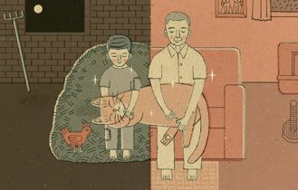 「不累,不累。」父親抬起頭來,笑咪咪的對我說。自從貓咪來我家,父親臉上的笑容變多了,神情也顯得舒緩愉悅。也許,他一直都很喜歡動物吧。我記得小時候鄰居家生了一窩小狗,圓滾滾、毛茸茸的,我央求父親收養一隻,父親對我說:「其實我也喜歡,但是要妳媽媽同意才行。」我去問媽媽,她正為了家庭育嬰的工作忙得不亦樂乎,一邊餵奶,一邊叫我去安撫哭泣的一個嬰兒,一邊拍打著懷中另一個嬰兒的背,等待著吃過奶的嬰兒打嗝。問這個問題的時候,自己都覺得心虛:「媽,我想要養狗,我們可以養嗎?」「不行。我不喜歡狗。」