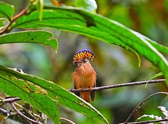 都知道皇霸鶲隱藏了一頂冠,都知道那冠若是打開,鬼哭神號(有這麼嚴重嗎?),前提是要在牠們求偶的季節,仰賴當地鳥導找到巢位。