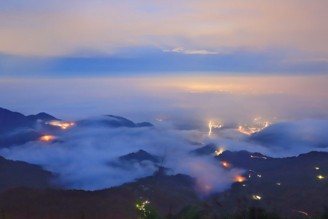 嘉義縣台18線阿里山公路上「隙頂、頂石棹琉璃光」,是秋冬限定美景,每年此時天氣日夜溫差大多變,琉璃光吸引遊客賞景,美景紅到國外;攝影達人曾國根昨晚開車上隙頂,看到國外遊客也來觀賞璀燦夢幻琉璃光美景,驚嘆光影雲霧變化奇幻美景