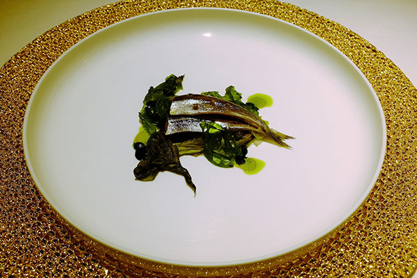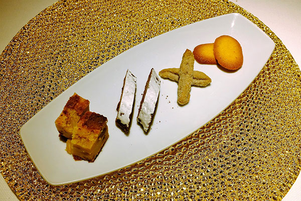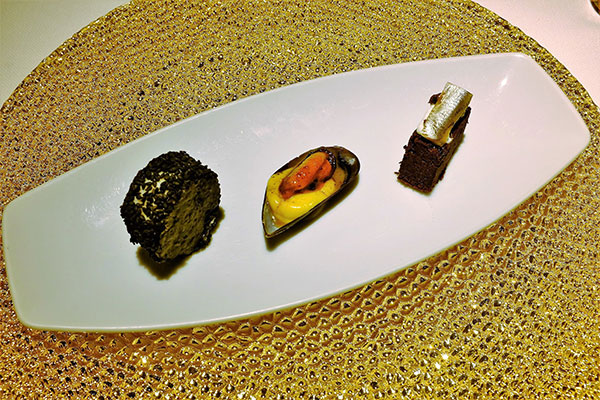 ¤T¼Ë«eµæ¤pÂI¡CªA°È¥Í»¡³o¬O¼p®vªº«Â¥§´µ¶Ç²Î¤p¦Ycicchetti¡A¶Ç²Îªºcicchetti¦³³o»òºë½o¤~¨£°«¨¡C³o¤T¼Ë±q¥ª¦Ü¥k¤À§O¬OCod with sesame seeds¡GùؤW¤F¶ÂªÛ³Âªº÷«³½¡ACaramelized mussels with juniper with creme brulee and porcelain mushrooms¡G§ùªQ¤l·Î²Hµæ©MµJ¿}¥¬¤B¥H¤Îporcelain»Û£¡AChocolate cake with goat cheese and anchovies¡GÄÐ¥©§J¤O³J¿|©M¦Ï¥¤°_¤h¥H¤Îõl³½¡C±q³o¤T¼Ë¤pÂI¸Ì¥L®³µJ¿}¥¬¤B¨Ó°t²Hµæ©M®³õl³½¨Ó°tÄÐ¥©§J¤O³J¿|¡A§A´Nª¾¹D¥Lµø¶Ç²ÎÄй©M²¢ÂI¤§¶¡ªº·¡ªeº~¬É©óµLª«¡Aª±«Ü¤j¡C