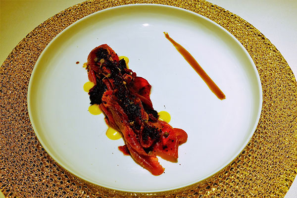 Beef and beetroot carpaccio, oak mayonnaise, fermented plum¡G¾M¥Í¤û¦×©M²¢µæ®Ú¡A·ÏÂt¾ó¤ì¬ü¤D´þ¡A¾M±ö¤l¡C§Úµoı¥L¯uªº«Üµ½©ó§Q¥Î¾Mº{ªº¹§÷¨Ó¦b¨ýı¤W¼W¥[¼h¦¸©M±a¥X¥Ì¨ý¡Cè診¹D¦³¾Mº{ªº©ø¥¬¡A³o¹D¦³¾M±ö¤l¡A«Ü¼F®`¡C