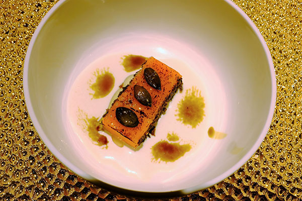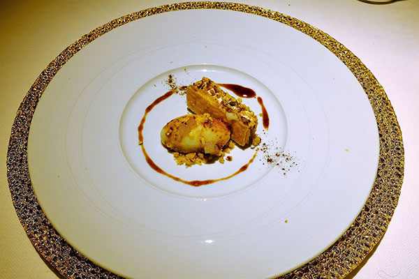 Mille-feuille, hazelnut cream, pear sorbet, porcini mushroom reduction sauce¡G²¢ÂI¬O¤d¼h³J¿|¡Aºd¤l¥¤Âæ¡A±ù¤l¦B¬â¡Aporcini»Û£Âæ¥Ä¡C§Úı±o¥L¥Îporcini»Û£¼õ¦¨¿@¸YªºÂæ¥Ä¨Ó·f°t²¢ÂI´N¬O¥L¼F®`ªº¦a¤è¡A¤]¬O¥Lªºµæ¤§©Ò¥H¦³½ìªº¦a¤è¡C