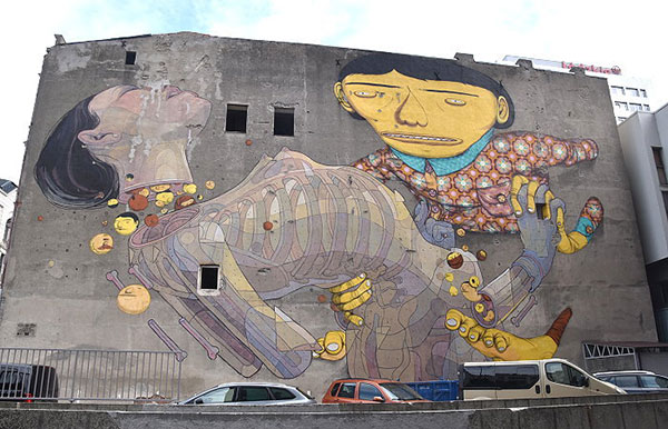 巴西兄弟Os Gêmeos和西班牙藝術家Aryz合作壁畫,2012