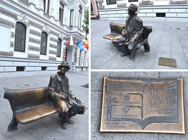市政廳前有波蘭詩人朱利安·圖維姆(Julian Tuwim,1895~1953)坐在長凳上的身姿。