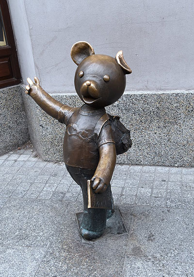 烏薩特卡熊雕像(Pomnik Misia Uszatka),不到一公尺高、重60公斤,背著背包、左手拿著城市地圖,以遊客造型佇立街頭。