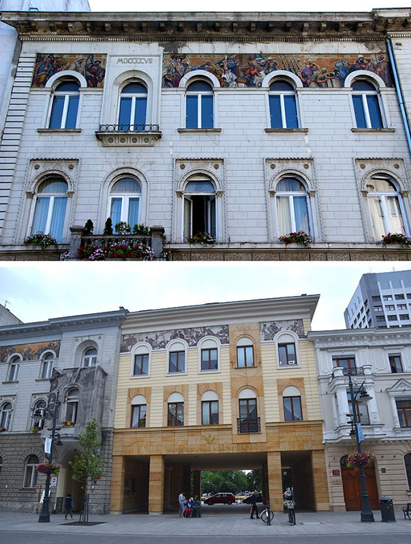 羅茲PiS法律和司法部議會辦公室(PiS Prawo i Sprawiedliwość, Biuro Zarządu Okręgowego Łodzi),新藝術風格建築,壁面繪有細膩的紋飾。