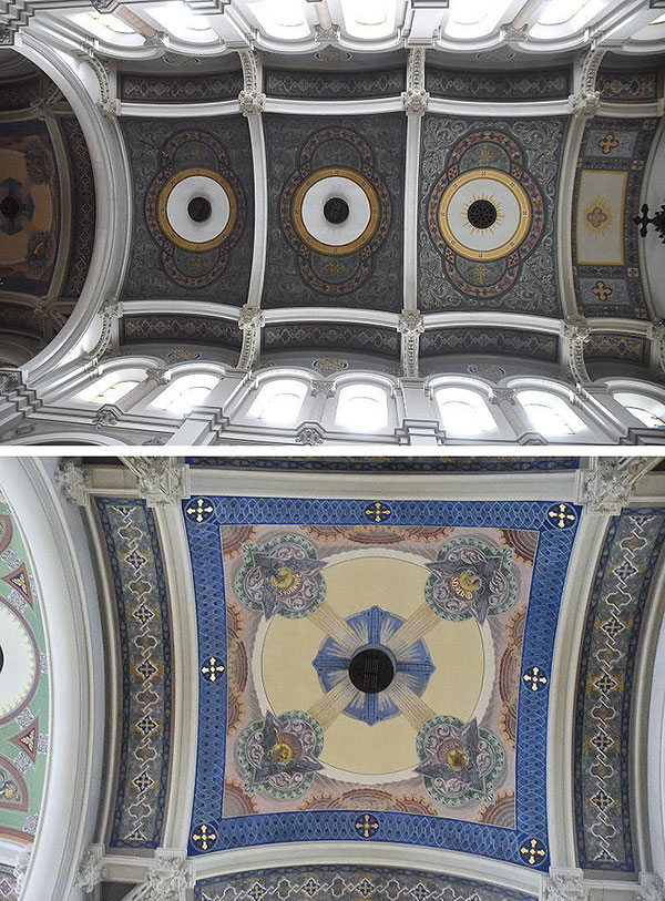 | 頂棚有古典細緻、色調典雅的彩繪。 |