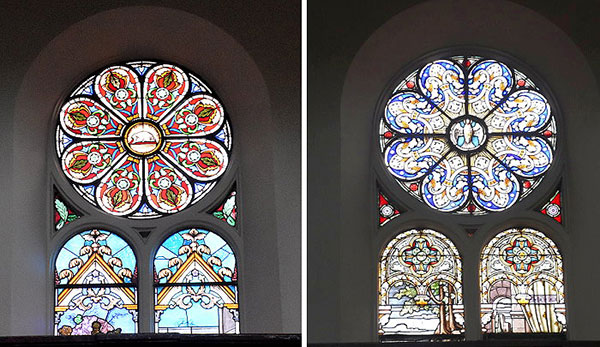 | 美麗的玫瑰花窗與鑲嵌玻璃。 |