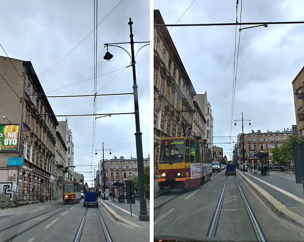 路面電車與汽車共用路權。要離開羅茲時有一段行駛於路面電車道上,迎面就與電車會車,非常新鮮的駕駛體驗。