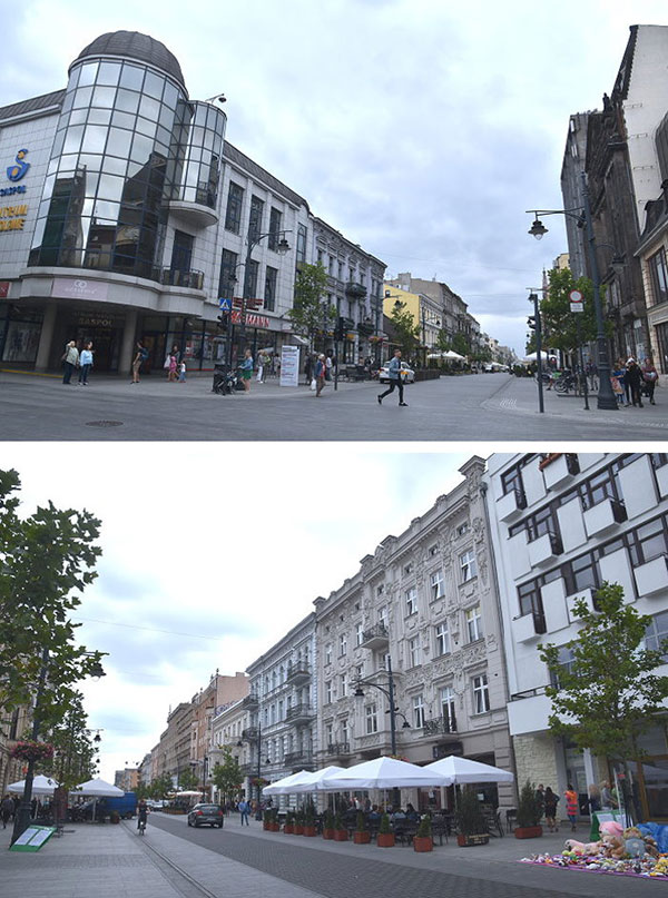 這條街的在 1990 年之後發生了變化。當年,建築師和藝術團體“Łódź Kaliska”的成員 Marek Janiak 提出了創建Piotrkowska 街基金會的想法。它的目標是振興這條街道並將其變成一個步行區。