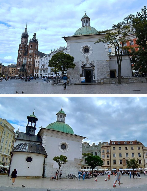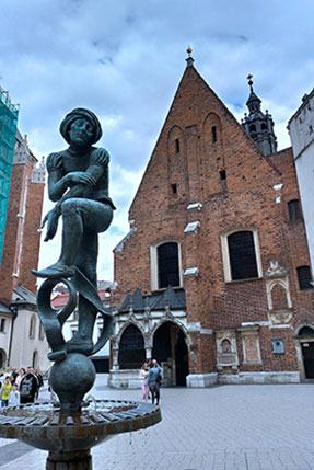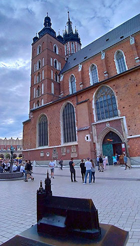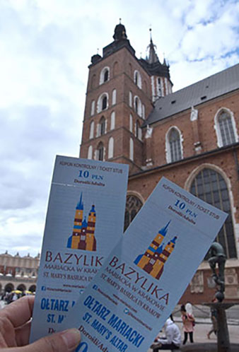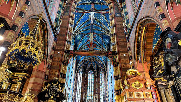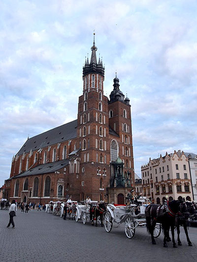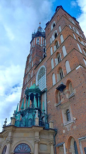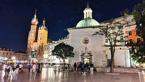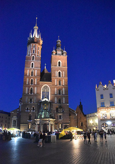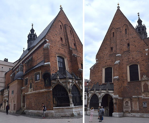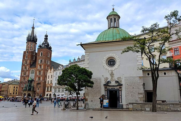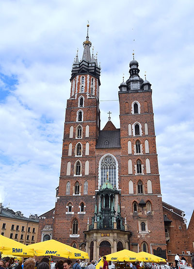 聖母聖殿 (Kosciol Mariacki/St. Marys Basilica )與聖亞德伯堂(Kościół św. Wojciecha)坐落克拉科夫老城區中央集市廣場上,而擁有80 公尺高塔樓的聖母聖殿是城市天際線最突出的地標建築之一。