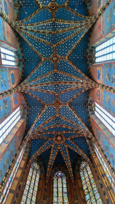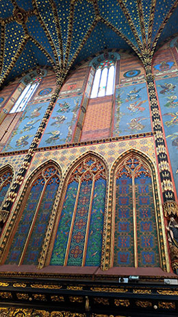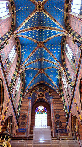 恆星穹頂下,光線通過高高的彩色玻璃窗進入教堂之內。當中,原始的中世紀彩色玻璃僅保留了三扇窗戶,其餘部分皆為19 世紀,由斯坦尼斯瓦夫.維斯堡亞斯基 (Stanisław Wyspiański) 和約瑟夫.梅霍夫(Józef Mehoffer) 等人創作。