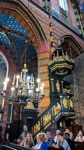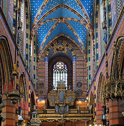 19 世紀後期,塔德烏什.斯特列延斯基(Tadeusz Stryjeński) 領導了教堂大規模的修復工作。當時,教堂由 揚.馬捷科(Jan Matejko)設計、斯坦尼斯瓦夫.維斯堡亞斯基 (Stanisław Wyspiański)、約瑟夫.梅霍夫(Józef Mehoffer) 等人創作的新彩繪裝飾。拱頂模仿滿天繁星,牆壁上覆蓋著裝飾和紋章主題的畫作及天使演奏樂器或手持彩帶和聖母瑪利亞的祈禱文的圖像(文引自官網)。