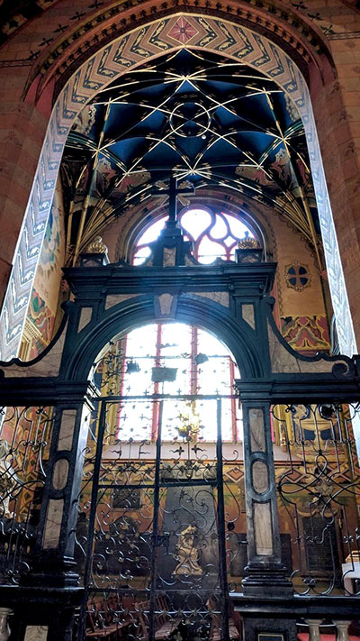 教堂內部精美繁複的雕刻,鮮麗繽紛的壁畫、絢爛多彩的玻璃窗及宛若星空般的穹頂都讓人目眩神迷。