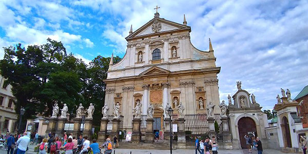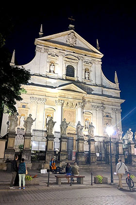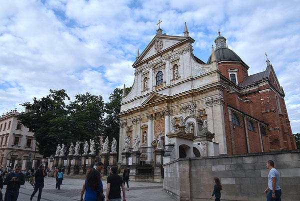 聖伯多祿聖保祿教堂(Kościół ŚŚ Pawła w Krakowie) ,由齊格蒙特三世為耶穌會建於1597∼1619年,1635年7月8日開啟的羅馬天主教教堂,也是克拉科夫第一座純粹的巴洛克風格建築。1809~1815年此教堂曾經被改為東正教堂。自西元1842年以來,它屬於天主教諸聖堂區。1960年升為宗座聖殿(資料引自維基百科)。