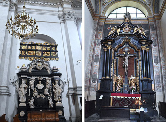 巴洛克晚期祭壇1640 年左右放置了鍍金的天使雕像,當中繪畫很可能由弗朗西斯科.普拉西迪 (Francisco Placidi)所繪製的16 世紀晚期「穿著銀色連衣裙的洛雷托夫人」畫作。