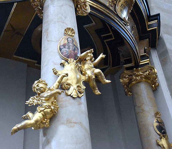 教堂隨處都可見以各種材質裝飾繁複華麗的巴洛克式拜龕,令人目不暇給。
