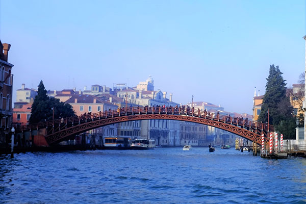 美術館前就是「大運河」Canale Grande上名橋之一的「學院橋」Ponte dellAccademia。美術館和橋現在都有點名不符實,因為它們原來名字裡的「威尼斯美術學院」Accademia di Belle Arti di Venezia已經在2004年時搬走了。