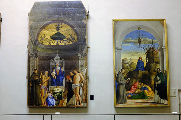 左邊是喬瓦尼·貝利尼Giovanni Bellini的祭壇裝飾用板面繪畫San Giobbe Altarpiece。
