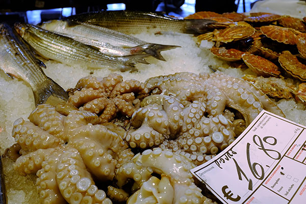 各式的墨魚和花枝。在歐洲沿海懂得吃海鮮的地方看這些魚獲真是人生一大樂事!