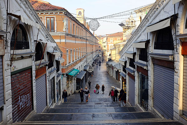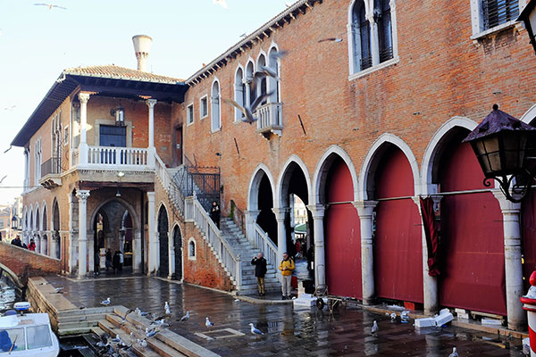 「里阿爾托市場」Mercato di Rialto靠著「大運河」Canale Grande,就在出名的「里阿爾托橋」Ponte di Rialto北岸。