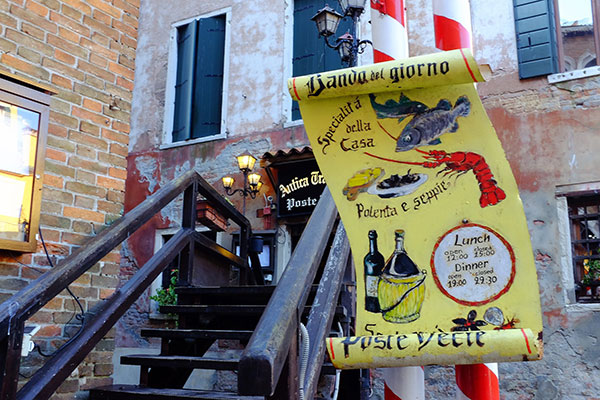 魚市場的附近有不少的海鮮餐廳。在靠小運河的一側就有這家蠻可愛的Poste Vecie。