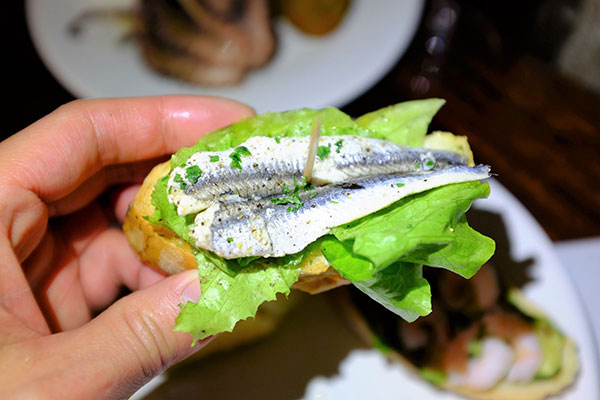 麵包上的鯷魚。