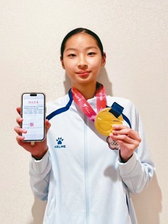 | 劉侑芸亞錦賽奪金,獲總統賀電。圖/運動部提供 |