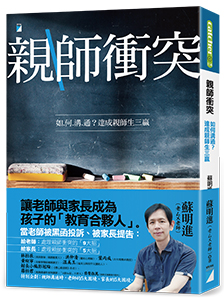 另一本與親師溝通相關的書是《親師衝突──如何溝通?達成親師生三贏》,總是受學生及家長信任的蘇明進老師,其實也曾被投訴,而這本書正是如何處理與面對,讓親師生三方三贏。