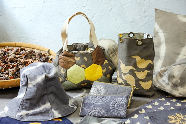Under the guidance of indigo dyeing artisan Chen Mei(陳梅), the water chestnut shells are boiled for about three hours, releasing a subtle water chestnut fragrance and a deep black dye. After washing, dyeing, setting the color, and designing patterns on the fabric, the final design is screen-printed. Once dried, each piece becomes a unique water chestnut-dyed creation. |