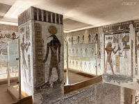 | ▲帝王谷的工匠為了不讓蠟燭的煙與火破壞畫作,利用太陽反射進地下墓穴來作畫, 至今保存這麼完整的色彩。