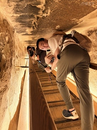 沿著尼羅河南下,我們來到亞斯文和路克索。一路探索了菲萊、阿布辛貝與路克索神廟等,這些巨大的法老雕像和石柱群,無聲地印證了「法老即神祇」的王權意識形態。這些宏偉的建築不僅是供奉神祇的殿堂,更是法老王權的巨大廣告看板。神廟的壁畫上,刻畫著的不僅是拉美西斯二世的豐功偉業,還有鷹神荷魯斯與塞特的神話搏鬥;更有手術、香水製程、曆法,甚至剖腹產過程的歷程故事,讓旅人一窺古埃及超乎想像的技術文明。