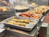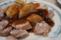 | ▲紅糟色澤漂亮的紅燒肉,還可以選肥瘦,炸物還有韭菜和雞捲。