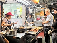 我在台北北投遇見一攤受在地客喜愛的巷口米粉攤,傍晚人來人往的中和街上,排隊人潮不斷。我跟著進到隊伍裡,我邊看著女老闆快速的處理著客人口頭點餐的食材,以及那鍋裡不斷上下滾沸的湯料,點餐的女性和女老闆的對話引起我的注意。女客說:「幫我把切料一起放進去米粉湯裡,這樣外帶晚點吃還會保有濕潤口感。」女老闆贊同的說:「對啦!外帶回去沒有馬上吃,口感才不會變。」