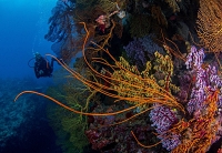 斐濟被譽為「世界軟珊瑚之都」,海洋生態豐富,潛入其中,有機會與鯊魚、鬼蝠魟或海龜共游;而水面上Cloudbreak更是世界知名的衝浪勝地!斐濟也因鄰近大翅鯨育幼的東加王國海域,我在潛水與觀浪的水面休憩時光,都意外看見大翅鯨躍身擊浪、舉尾,令人驚喜!斐濟美麗、清澈的海洋彷彿人間仙境,金黃沙灘細緻柔軟,海中瑰麗的珊瑚礁群宛如繽紛花園,神仙魚、鸚哥魚、石斑魚自在穿梭,偶爾還能遇見梭魚、海龜,更幸運的話,還有機會與溫馴的礁鯊共游。而5至10月是欣賞鬼蝠魟的最佳時節,牠們會在特定礁區覓食或清潔,姿態優雅。