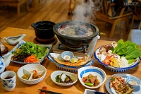 午餐「地產風有機旬料理」的食材選擇上,蕃薯藤溫泉會所延續品牌堅持「食當地、食當季、食有機」精神,用桃園在地豐富食材饗客,體現了「從產地到餐桌」的有機生活概念。如炸物取自石門水庫的溪哥與溪蝦,炊飯以復興在地綠竹筍、椴木香菇入饌,烤物則能吃到附近高義部落產的冷泉鱒魚等。泡湯後的午茶時光,同樣充滿儀式感。有機午茶套餐包含招牌的窯烤小松菜紅蘿蔔麵包,搭配甜點(有機紅豆白玉、檸檬起司蛋糕)雙拼。飲品則嚴選自家烘焙的有機認證咖啡豆、日本靜岡直送茶品,或自家茶園種植的有機紅茶,用餐附贈美人足湯,能在門前綠地旁的廊下泡泡腳,優雅地享受午後愜意。