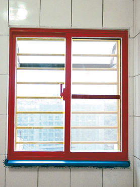 2. 鐵窗漆成黃色,鋁窗漆成紅色、窗台漆成藍色。