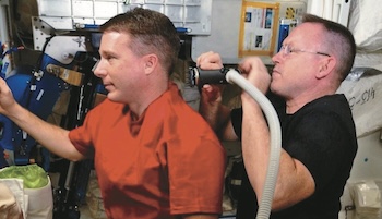 運動是每日例行工事。失重環境會讓骨頭變脆,為了避免骨質流失,太空人每天必須花2小時做運動。